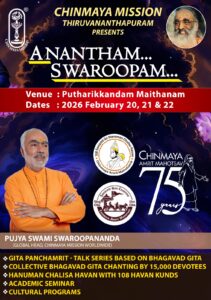 Chinmaya Anantham Swaroopam-75th Chinmaya Amrit Mahotsav on February 20-22 at Putharikandam Maithanam.